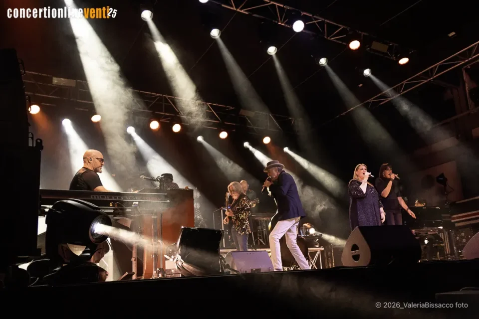 L’apertura è affidata a “Via della povertà”, quasi un manifesto di quel filo rosso che lega De Gregori a Dylan e alla grande tradizione folk internazionale. Da lì in avanti il ritmo è quello di una scaletta generosa, che non concede tregua: “Cercando un altro Egitto”, “Atlantide”, “Caldo e scuro”, fino a una “Caterina” che ha fatto cantare il pubblico e a un’inattesa “Mannaggia alla musica”, perle che ricordano quanto vasto e stratificato sia il suo repertorio. Il cuore del concerto pulsa tra i classici: “Pezzi di vetro”, “Il signor Hood”, “Piccola mela”, “Rimmel”. Ed è qui che la serata prende una piega speciale, quando De Gregori introduce sul palco Enzo Avitabile. L’incontro tra i due artisti diventa magia: Avitabile entra con “Le storie di ieri” e resta fino a “Generale”, arricchendo il brano con il suo fiato e la sua intensità. È un momento di scambio vero, di amicizia artistica, in cui le due voci non si sovrappongono ma si amplificano. La seconda parte del concerto è un alternarsi di gioielli che hanno fatto la storia: “La valigia dell’attore”, “Sempre e per sempre”, “Adelante Adelante”, “La storia”, “Bufalo Bill”. Canzoni che hanno la forza di trasformare il tempo presente in memoria collettiva, che legano generazioni diverse con lo stesso filo emotivo. Il finale è tutto per i bis, e qui De Gregori non può che concedere “La donna cannone”, seguita da “Buonanotte fiorellino”, prima in versione intima e poi in una sorprendente versione con i fiati, che riempie l’aria di leggerezza e malinconia allo stesso tempo. Ma non è tutto: in platea c’era anche Tony Servillo, fresco di Leone conquistato a Venezia, arrivato con moglie e nipote a godersi la serata. Nel backstage ha salutato prima Francesco De Gregori e poi Enzo Avitabile, suggellando un incontro che ha il sapore di un abbraccio tra diverse forme d’arte, unite dalla stessa radice culturale e dalla stessa intensità espressiva.